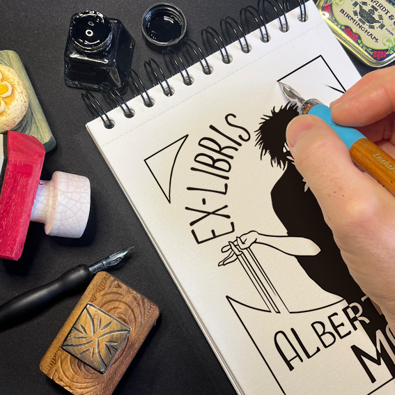 Si no tienes los medios o conocimientos para diseñar tu propio Ex libris y quieres algo único y exclusivo, no lo dudes, esta es tu solución. Nuestro dibujante lo hará por ti.